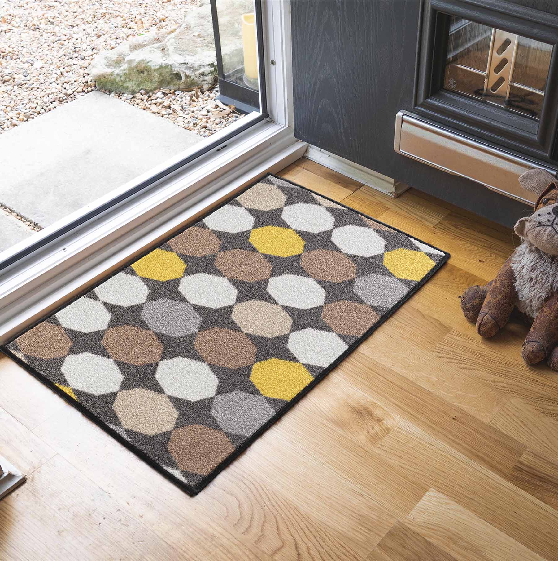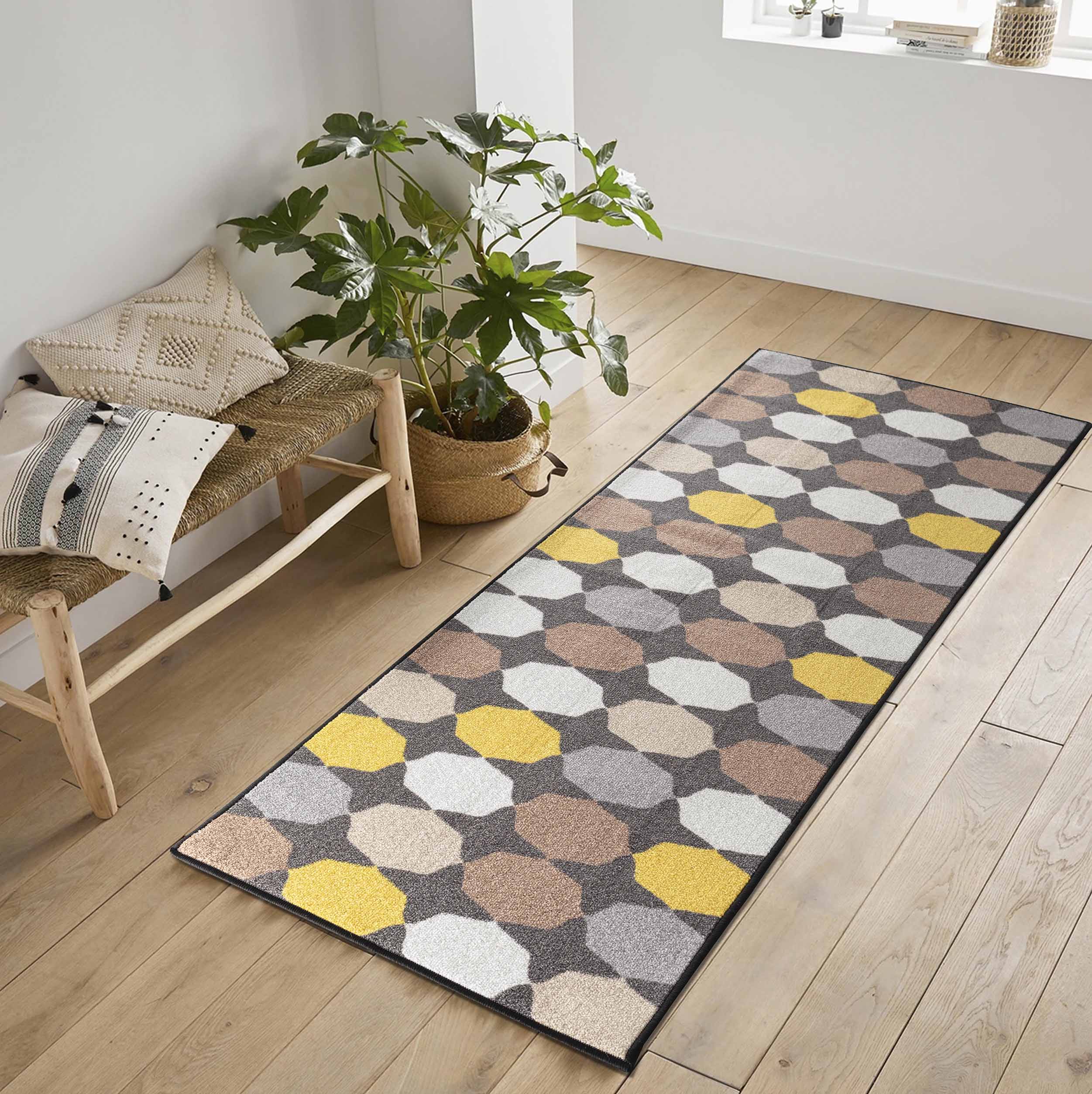 Introducing the perfect addition to any home: our modern and versatile mat! With various geometric designs to choose from, our mats are sure to stand out and make a statement. Available in a range of sizes, this all-purpose, utility rug is a perfect fit for any high-traffic area in your house. Our mats are designed with both style and functionality in mind, complete with anti-slip features and easy-to-clean materials. Durable and machine-washable at 30ºC you can enjoy this rug with no worries. Whether you're looking to enhance your entryway or add a pop of modern design to your kitchen, our mat is the perfect choice.