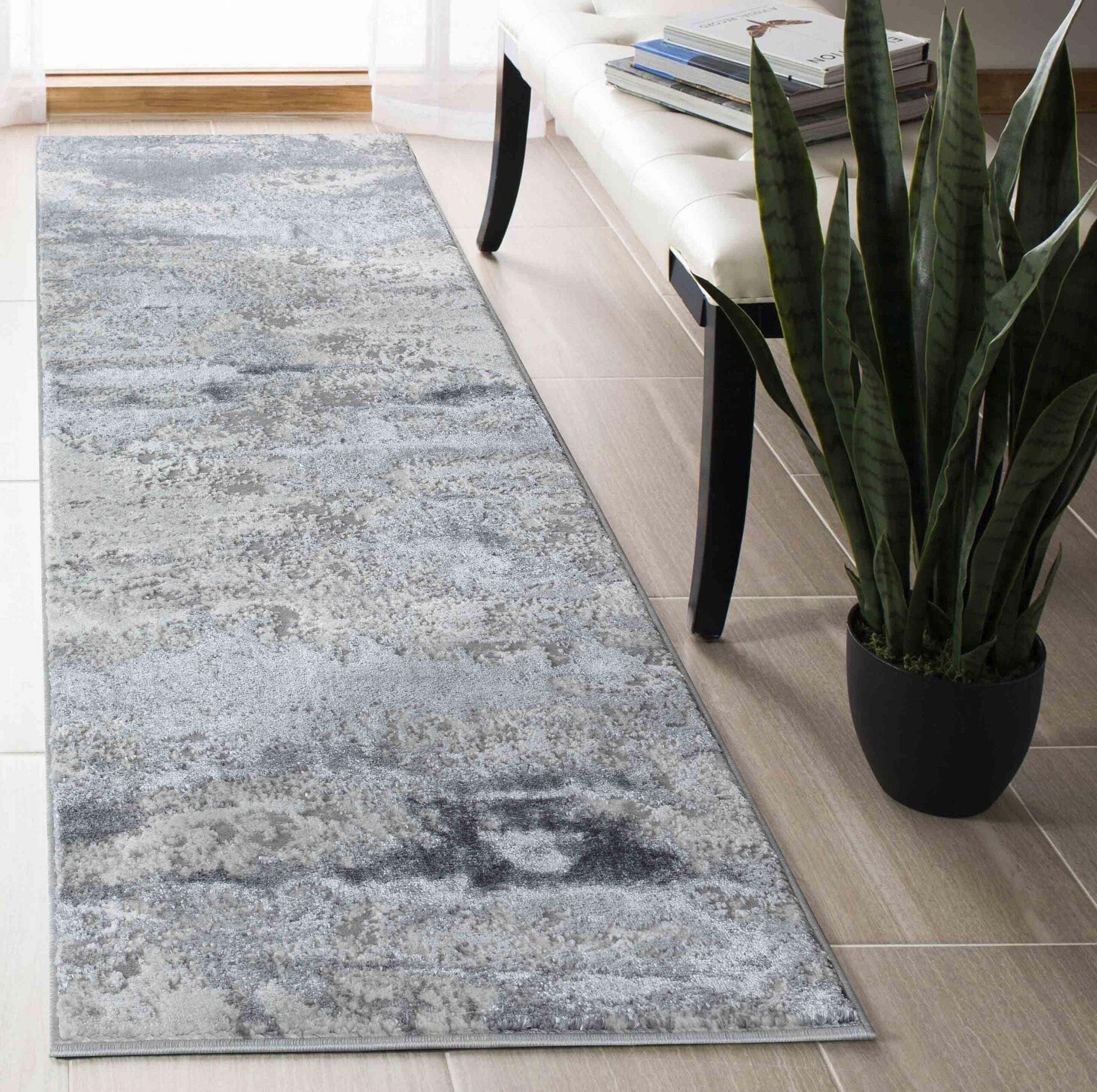 Introducing the top trending rug that will elevate your home decor to the next level! Our statement piece rug displays an elegant design with a textured pattern that adds depth and dimension to any room. Made with a natural fibre backing, this rug is not only beautiful but also eco-friendly. The metallic sheen of the rug catches the light and adds a touch of glamour to your space. Whether you're looking to improve your living room or add a luxurious touch to your bedroom, our rug is the perfect choice.