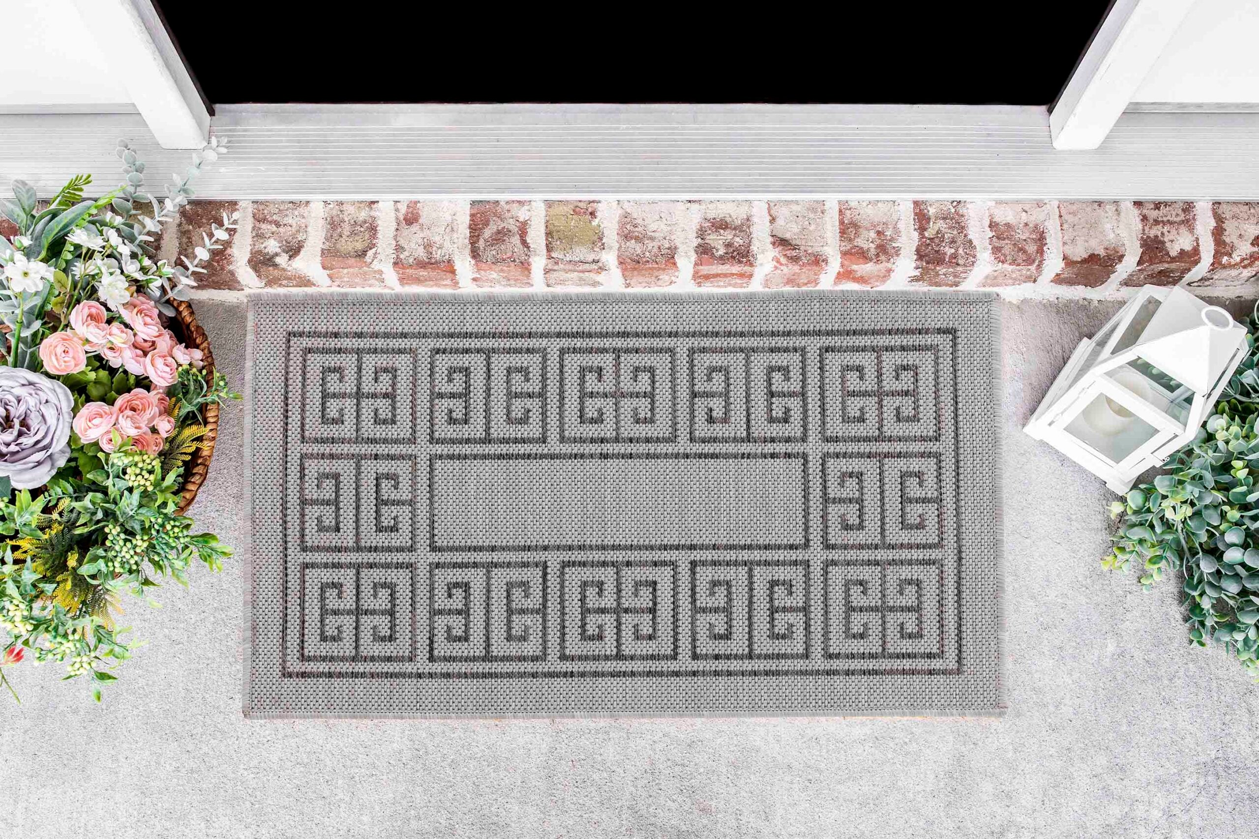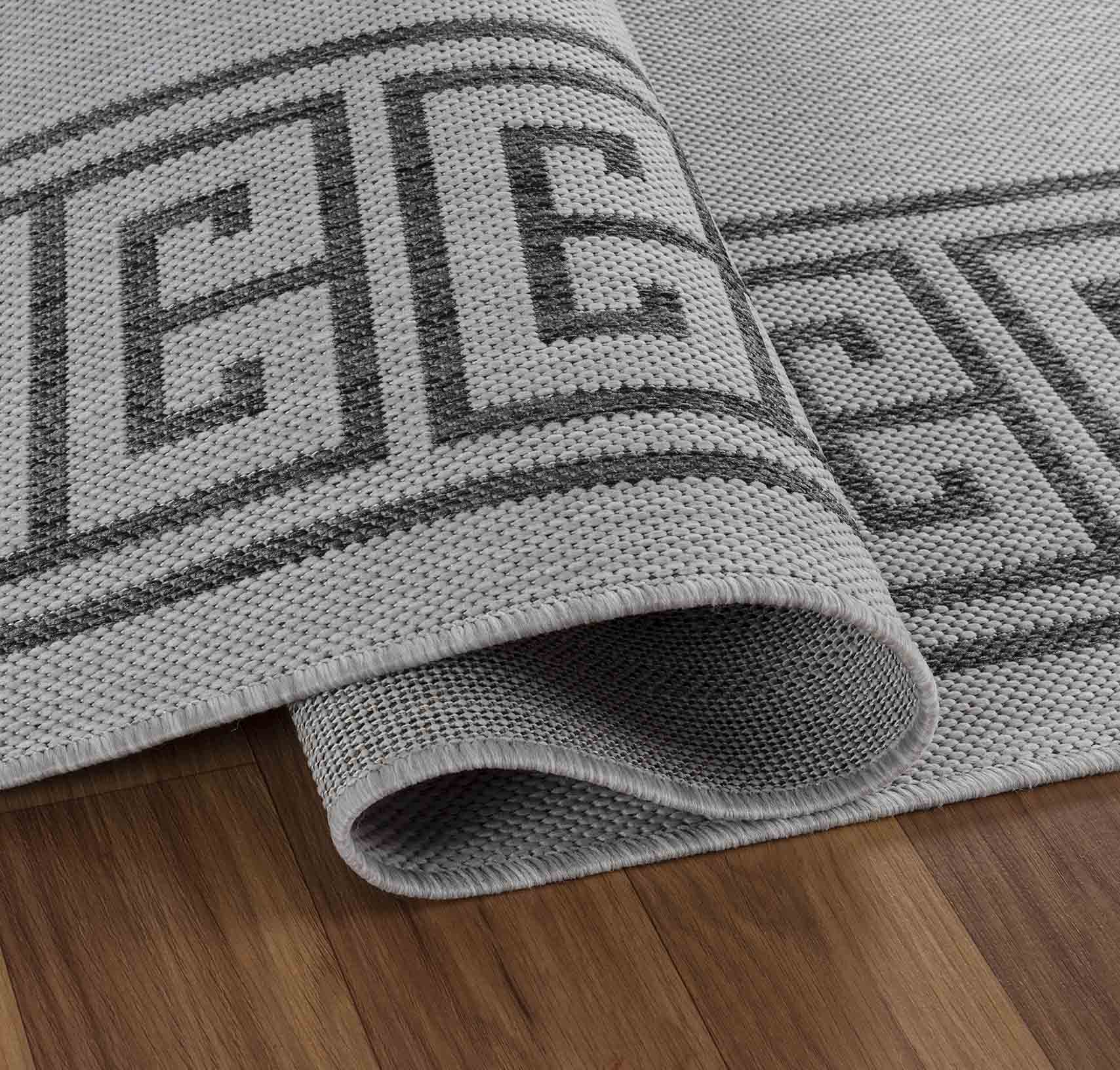 Sky Greek Key Outdoor Rug - Dark Grey